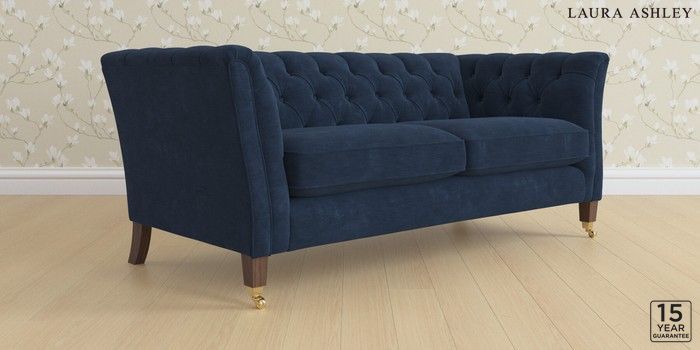 6.12.1 Buy Chatsworth Button Back by Laura Ashley 3 Seater Small Sofa Alwyn Velvet Midnight Navy Straight Brass Castor - Chestnut from the Next UK online shop Click here to use our accessible website