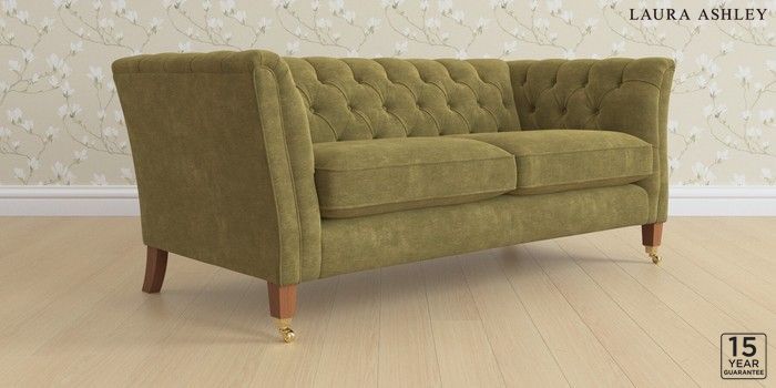 6.12.1 Buy Chatsworth Button Back by Laura Ashley 3 Seater Small Sofa Alwyn Velvet Olive Green Straight Brass Castor - Teak from the Next UK online shop Click here to use our accessible website