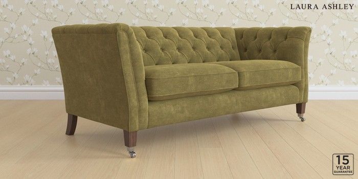 6.12.1 Buy Chatsworth Button Back by Laura Ashley 3 Seater Small Sofa Alwyn Velvet Olive Green Straight Chrome Castor - Chestnut from the Next UK online shop Click here to use our accessible website