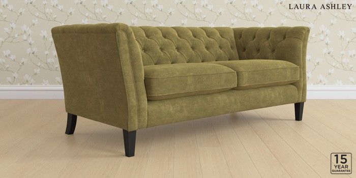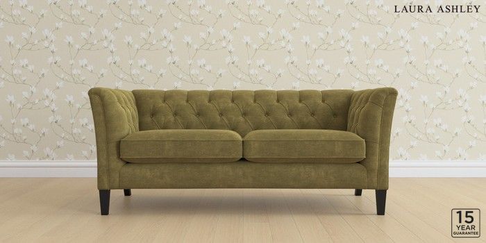 6.12.1 Buy Chatsworth Button Back by Laura Ashley 3 Seater Small Sofa Alwyn Velvet Olive Green Straight Mid - Black from the Next UK online shop Click here to use our accessible website