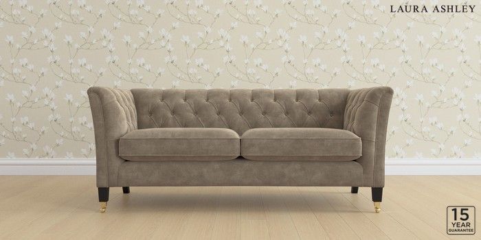 6.12.1 Buy Chatsworth Button Back by Laura Ashley 3 Seater Small Sofa Alwyn Velvet Truffle Natural Straight Brass Castor - Black from the Next UK online shop Click here to use our accessible website