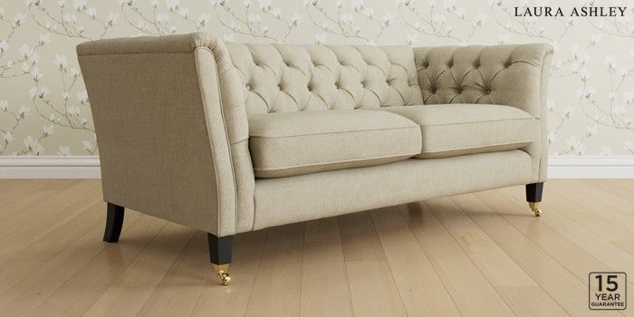 6.12.1 Buy Chatsworth Button Back by Laura Ashley 3 Seater Small Sofa Anneliese Natural Straight Brass Castor - Black from the Next UK online shop Click here to use our accessible website