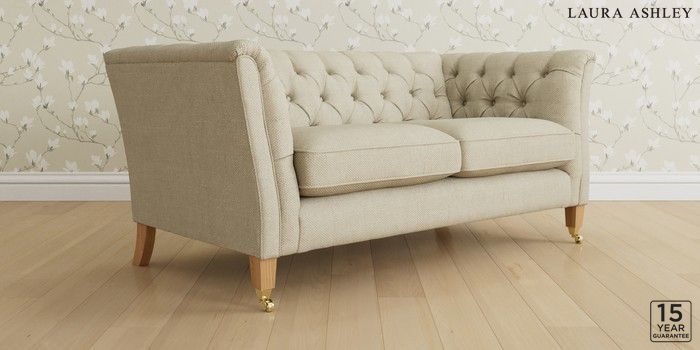 6.12.1 Buy Chatsworth Button Back by Laura Ashley 3 Seater Small Sofa Anneliese Natural Straight Brass Castor - Light Oak from the Next UK online shop Click here to use our accessible website