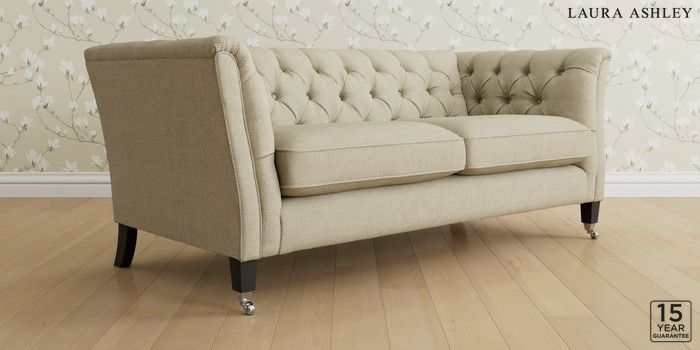 6.12.13 Buy Chatsworth Button Back by Laura Ashley 3 Seater Small Sofa Anneliese Natural Straight Chrome Castor - Black from the Next UK online shop Click here to use our accessible website