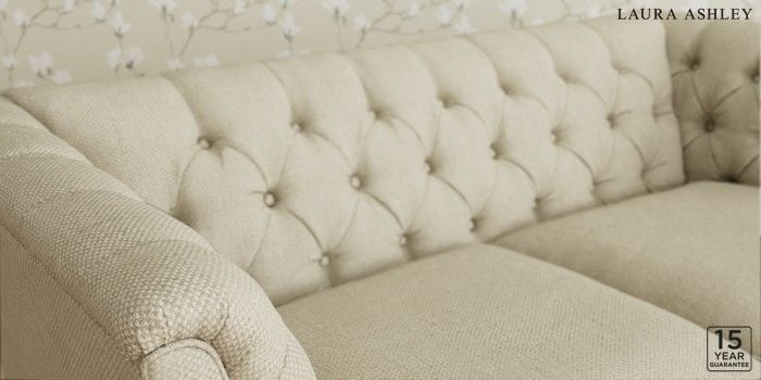 6.12.13 Buy Chatsworth Button Back by Laura Ashley 3 Seater Small Sofa Anneliese Natural Straight Chrome Castor - Light Oak from the Next UK online shop Click here to use our accessible website