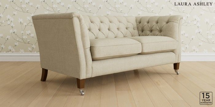 6.12.13 Buy Chatsworth Button Back by Laura Ashley 3 Seater Small Sofa Anneliese Natural Straight Chrome Castor - Teak from the Next UK online shop Click here to use our accessible website