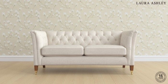 7.2.6 Buy Chatsworth Button Back by Laura Ashley 3 Seater Small Sofa Anneliese Oyster Natural Straight Brass Castor - Teak from the Next UK online shop Click here to use our accessible website