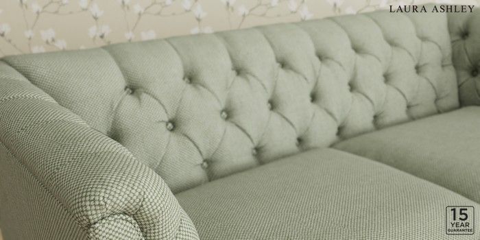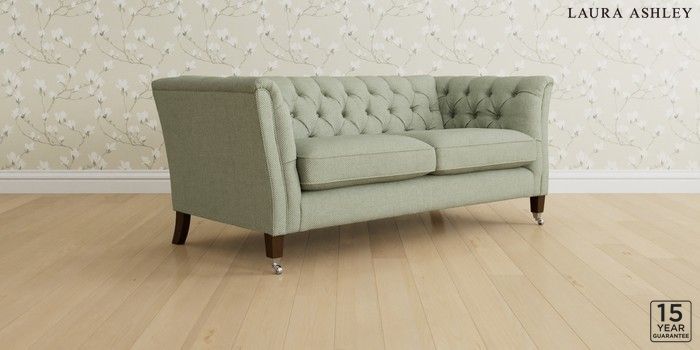 6.12.13 Buy Chatsworth Button Back by Laura Ashley 3 Seater Small Sofa Anneliese Sage Green Straight Chrome Castor - Chestnut from the Next UK online shop Click here to use our accessible website
