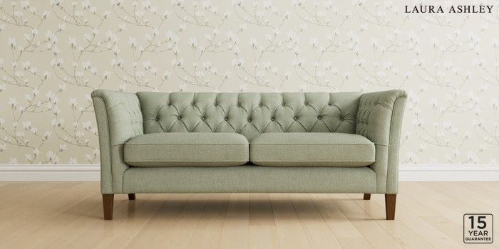 6.12.13 Buy Chatsworth Button Back by Laura Ashley 3 Seater Small Sofa Anneliese Sage Green Straight Mid - Teak from the Next UK online shop Click here to use our accessible website
