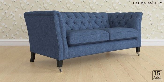 6.12.13 Buy Chatsworth Button Back by Laura Ashley 3 Seater Small Sofa Bainton Midnight Navy Straight Chrome Castor - Black from the Next UK online shop Click here to use our accessible website