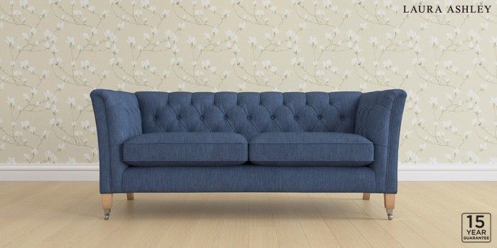 6.12.13 Buy Chatsworth Button Back by Laura Ashley 3 Seater Small Sofa Bainton Midnight Navy Straight Chrome Castor - Light Oak from the Next UK online shop Click here to use our accessible website