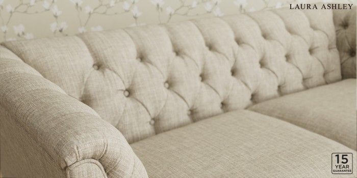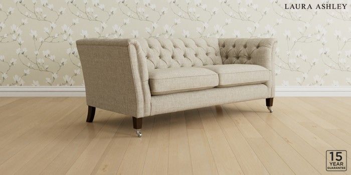 6.12.13 Buy Chatsworth Button Back by Laura Ashley 3 Seater Small Sofa Bainton Natural Straight Chrome Castor - Chestnut from the Next UK online shop Click here to use our accessible website
