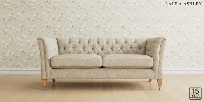 6.12.13 Buy Chatsworth Button Back by Laura Ashley 3 Seater Small Sofa Bainton Natural Straight Chrome Castor - Light Oak from the Next UK online shop Click here to use our accessible website