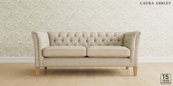 6.12.1 Buy Chatsworth Button Back by Laura Ashley 3 Seater Small Sofa Bainton Natural Straight Mid - Light Oak from the Next UK online shop Click here to use our accessible website