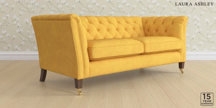 6.12.1 Buy Chatsworth Button Back by Laura Ashley 3 Seater Small Sofa Bainton Ochre Yellow Straight Brass Castor - Chestnut from the Next UK online shop Click here to use our accessible website