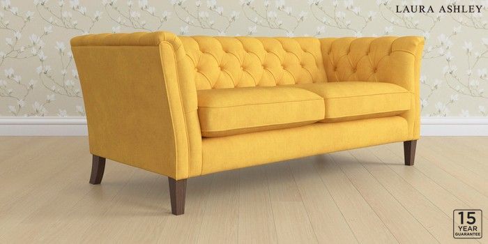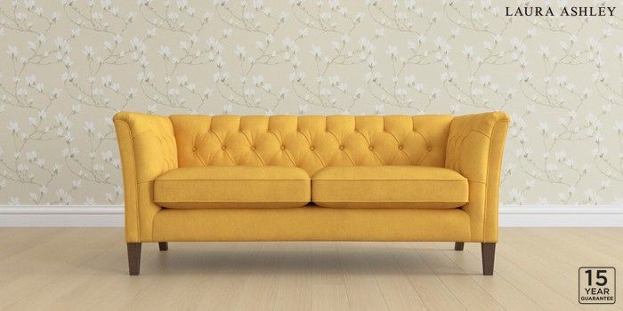 6.12.1 Buy Chatsworth Button Back by Laura Ashley 3 Seater Small Sofa Bainton Ochre Yellow Straight Mid - Chestnut from the Next UK online shop Click here to use our accessible website
