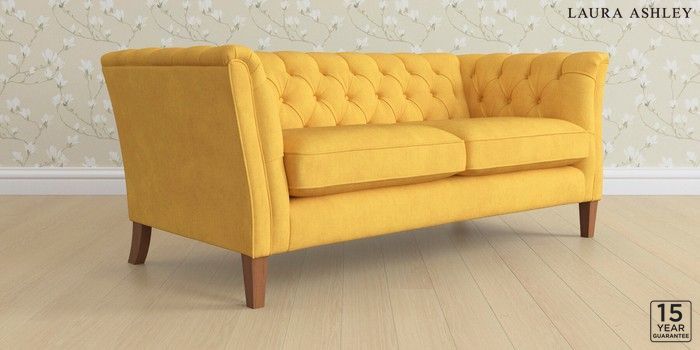 6.12.1 Buy Chatsworth Button Back by Laura Ashley 3 Seater Small Sofa Bainton Ochre Yellow Straight Mid - Teak from the Next UK online shop Click here to use our accessible website