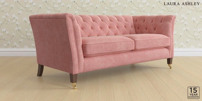 6.12.1 Buy Chatsworth Button Back by Laura Ashley 3 Seater Small Sofa Bainton Old Rose Pink Straight Brass Castor - Chestnut from the Next UK online shop Click here to use our accessible website