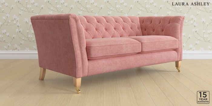 6.12.1 Buy Chatsworth Button Back by Laura Ashley 3 Seater Small Sofa Bainton Old Rose Pink Straight Brass Castor - Light Oak from the Next UK online shop Click here to use our accessible website