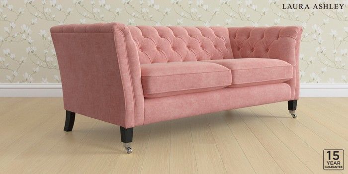 6.12.1 Buy Chatsworth Button Back by Laura Ashley 3 Seater Small Sofa Bainton Old Rose Pink Straight Chrome Castor - Black from the Next UK online shop Click here to use our accessible website