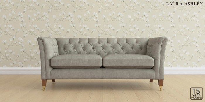 6.12.1 Buy Chatsworth Button Back by Laura Ashley 3 Seater Small Sofa Bainton Pale Steel Grey Straight Brass Castor - Teak from the Next UK online shop Click here to use our accessible website