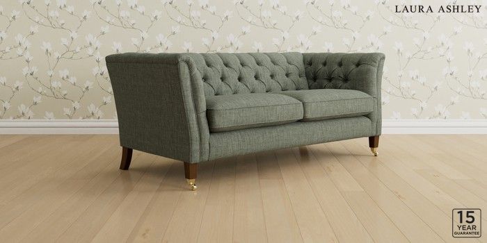 6.12.1 Buy Chatsworth Button Back by Laura Ashley 3 Seater Small Sofa Bainton Sage Green Straight Brass Castor - Teak from the Next UK online shop Click here to use our accessible website