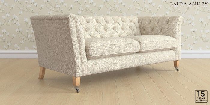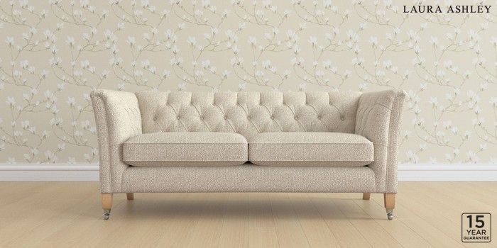 6.12.13 Buy Chatsworth Button Back by Laura Ashley 3 Seater Small Sofa Borwick Natural Straight Chrome Castor - Light Oak from the Next UK online shop Click here to use our accessible website