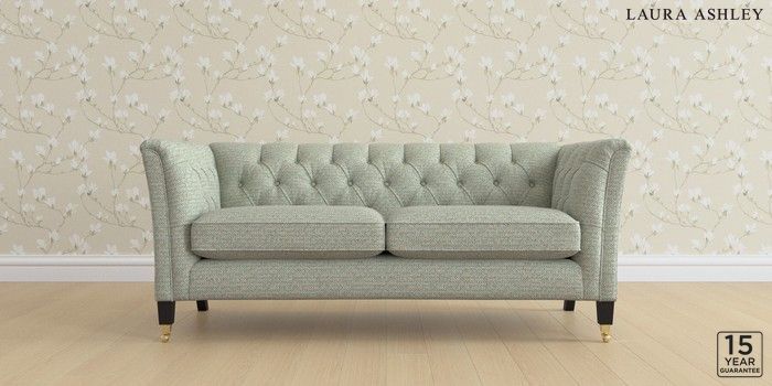 6.12.1 Buy Chatsworth Button Back by Laura Ashley 3 Seater Small Sofa Borwick Newport Blue Straight Brass Castor - Black from the Next UK online shop Click here to use our accessible website