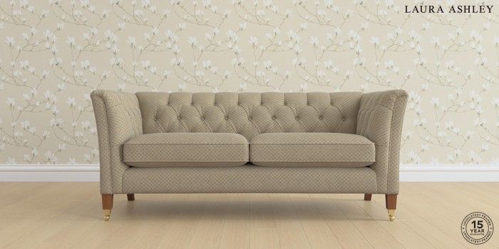 6.12.1 Buy Chatsworth Button Back by Laura Ashley 3 Seater Small Sofa Chequers Hazelnut Natural Straight Brass Castor - Teak from the Next UK online shop Click here to use our accessible website