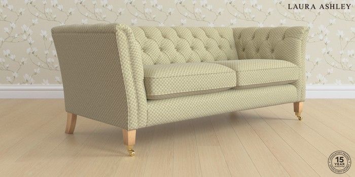 6.12.1 Buy Chatsworth Button Back by Laura Ashley 3 Seater Small Sofa Chequers Hedgerow Green Straight Brass Castor - Light Oak from the Next UK online shop Click here to use our accessible website