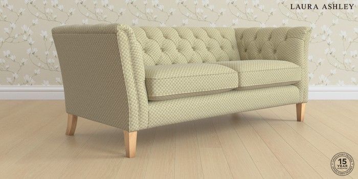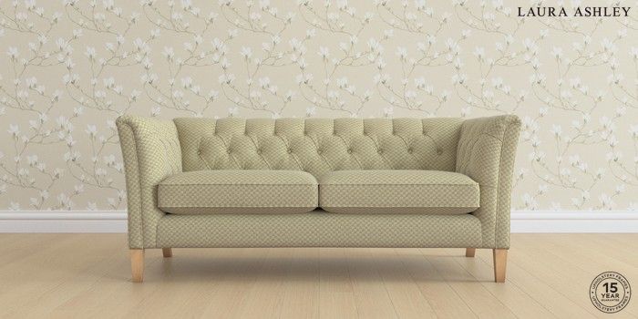 6.12.1 Buy Chatsworth Button Back by Laura Ashley 3 Seater Small Sofa Chequers Hedgerow Green Straight Mid - Light Oak from the Next UK online shop Click here to use our accessible website