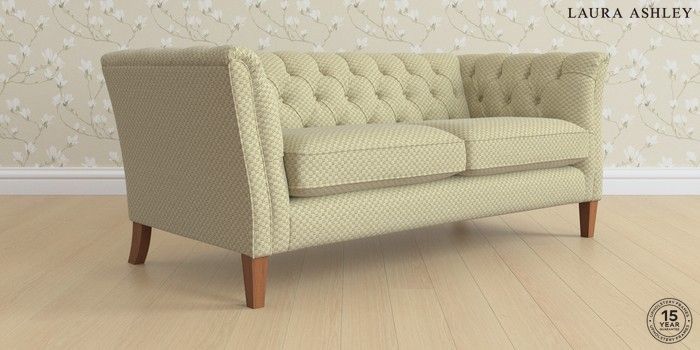 6.12.1 Buy Chatsworth Button Back by Laura Ashley 3 Seater Small Sofa Chequers Hedgerow Green Straight Mid - Teak from the Next UK online shop Click here to use our accessible website