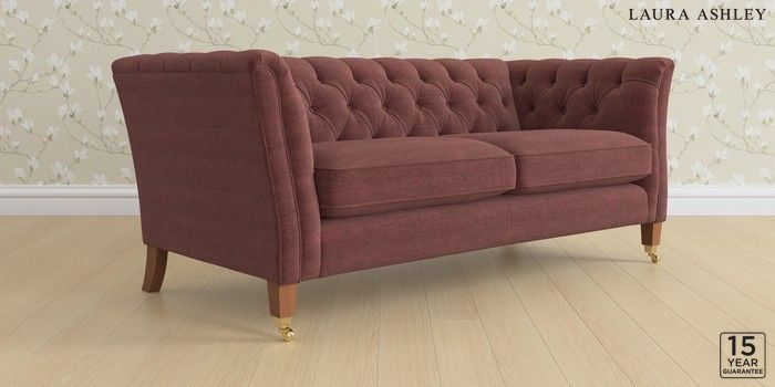 6.12.1 Buy Chatsworth Button Back by Laura Ashley 3 Seater Small Sofa Edwin Chenille Burgundy Red Straight Brass Castor - Teak from the Next UK online shop Click here to use our accessible website