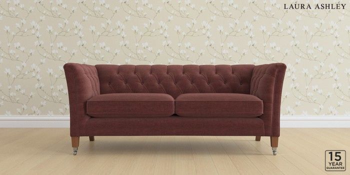 6.12.13 Buy Chatsworth Button Back by Laura Ashley 3 Seater Small Sofa Edwin Chenille Burgundy Red Straight Chrome Castor - Teak from the Next UK online shop Click here to use our accessible website