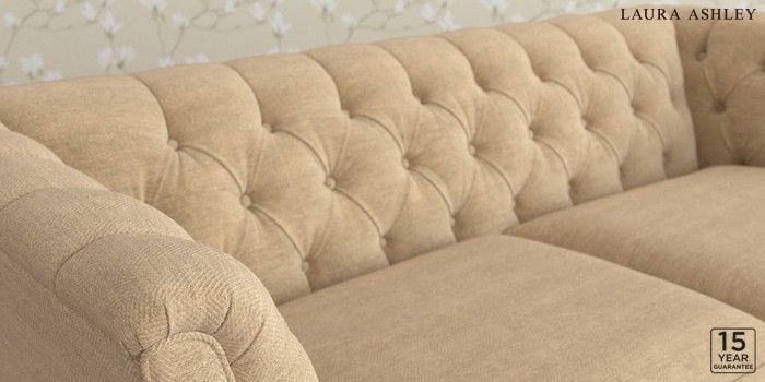 6.12.13 Buy Chatsworth Button Back by Laura Ashley 3 Seater Small Sofa Edwin Chenille Gold Natural Straight Brass Castor - Teak from the Next UK online shop Click here to use our accessible website