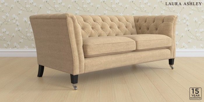 6.12.1 Buy Chatsworth Button Back by Laura Ashley 3 Seater Small Sofa Edwin Chenille Gold Natural Straight Chrome Castor - Black from the Next UK online shop Click here to use our accessible website