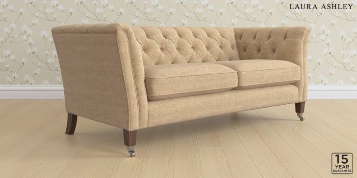 6.12.1 Buy Chatsworth Button Back by Laura Ashley 3 Seater Small Sofa Edwin Chenille Gold Natural Straight Chrome Castor - Chestnut from the Next UK online shop Click here to use our accessible website