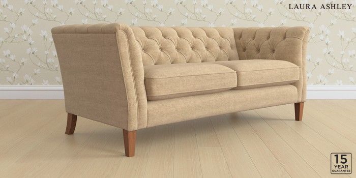 6.12.1 Buy Chatsworth Button Back by Laura Ashley 3 Seater Small Sofa Edwin Chenille Gold Natural Straight Mid - Teak from the Next UK online shop Click here to use our accessible website