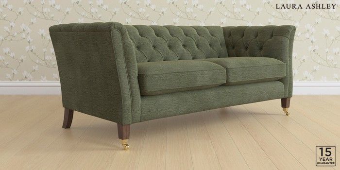 6.12.13 Buy Chatsworth Button Back by Laura Ashley 3 Seater Small Sofa Edwin Chenille Hedgerow Green Straight Brass Castor - Chestnut from the Next UK online shop Click here to use our accessible website