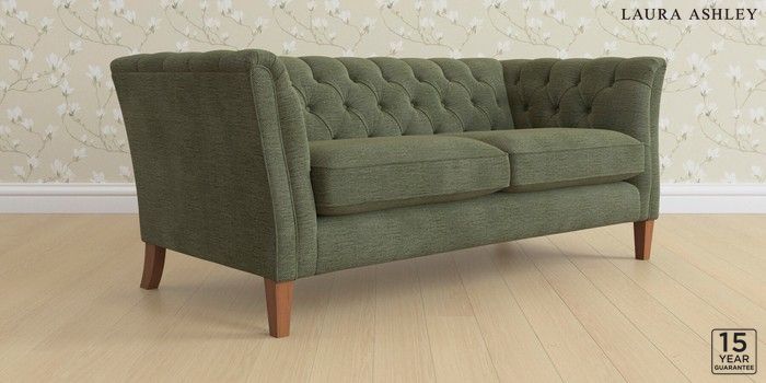 6.12.13 Buy Chatsworth Button Back by Laura Ashley 3 Seater Small Sofa Edwin Chenille Hedgerow Green Straight Mid - Teak from the Next UK online shop Click here to use our accessible website