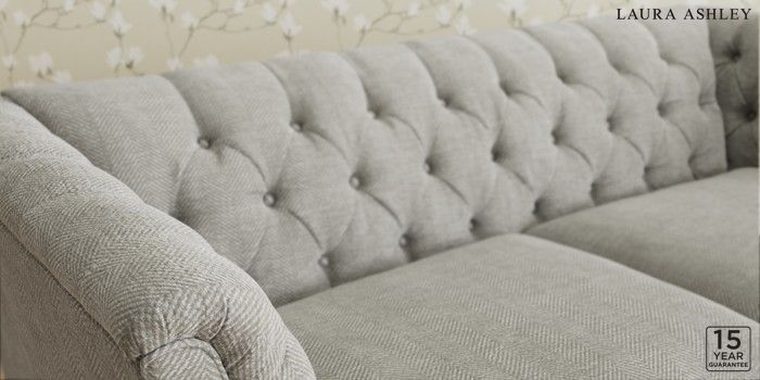 6.12.1 Buy Chatsworth Button Back by Laura Ashley 3 Seater Small Sofa Edwin Chenille Silver Grey Straight Brass Castor - Black from the Next UK online shop Click here to use our accessible website