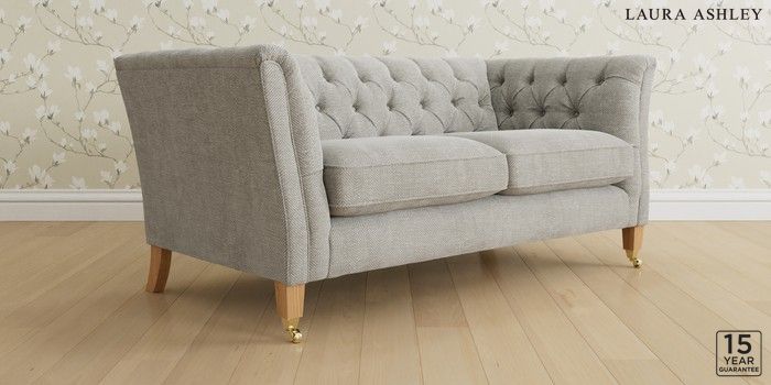 6.12.1 Buy Chatsworth Button Back by Laura Ashley 3 Seater Small Sofa Edwin Chenille Silver Grey Straight Brass Castor - Light Oak from the Next UK online shop Click here to use our accessible website