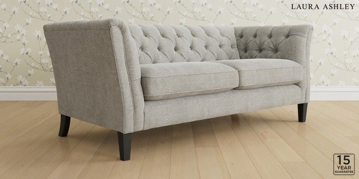 6.12.1 Buy Chatsworth Button Back by Laura Ashley 3 Seater Small Sofa Edwin Chenille Silver Grey Straight Mid - Black from the Next UK online shop Click here to use our accessible website