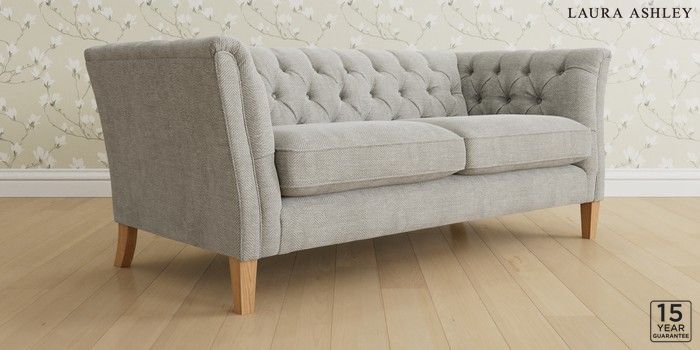 6.12.1 Buy Chatsworth Button Back by Laura Ashley 3 Seater Small Sofa Edwin Chenille Silver Grey Straight Mid - Light Oak from the Next UK online shop Click here to use our accessible website