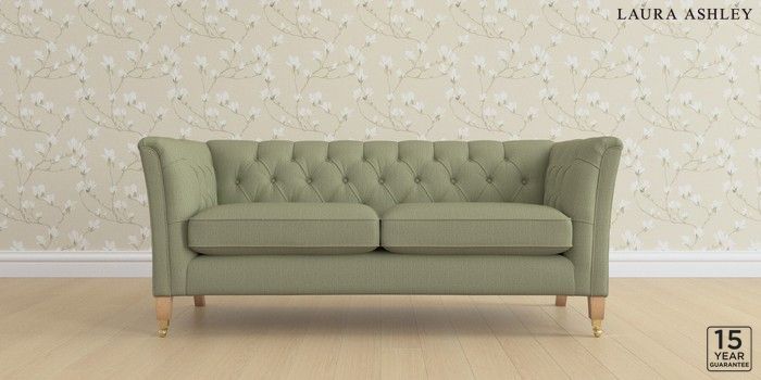 6.12.1 Buy Chatsworth Button Back by Laura Ashley 3 Seater Small Sofa Edwin Herringbone Hedgerow Green Straight Brass Castor - Light Oak from the Next UK online shop Click here to use our accessible website