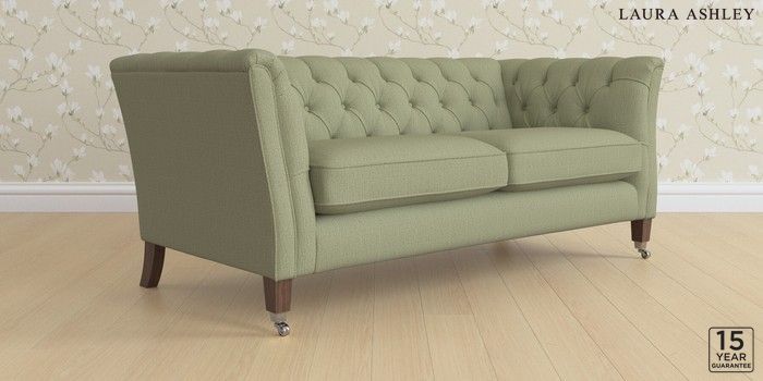 6.12.1 Buy Chatsworth Button Back by Laura Ashley 3 Seater Small Sofa Edwin Herringbone Hedgerow Green Straight Chrome Castor - Chestnut from the Next UK online shop Click here to use our accessible website