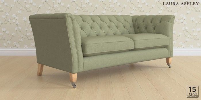 6.12.1 Buy Chatsworth Button Back by Laura Ashley 3 Seater Small Sofa Edwin Herringbone Hedgerow Green Straight Chrome Castor - Light Oak from the Next UK online shop Click here to use our accessible website