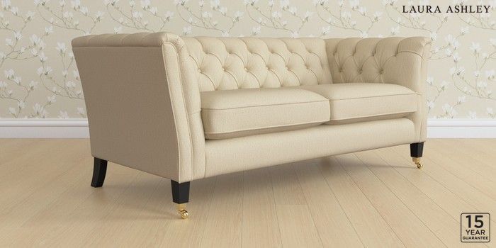 6.12.1 Buy Chatsworth Button Back by Laura Ashley 3 Seater Small Sofa Edwin Herringbone Natural Straight Brass Castor - Black from the Next UK online shop Click here to use our accessible website