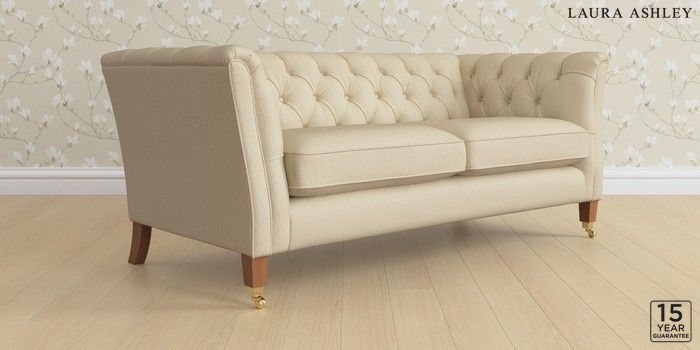 6.12.1 Buy Chatsworth Button Back by Laura Ashley 3 Seater Small Sofa Edwin Herringbone Natural Straight Brass Castor - Teak from the Next UK online shop Click here to use our accessible website