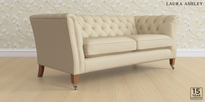 6.12.1 Buy Chatsworth Button Back by Laura Ashley 3 Seater Small Sofa Edwin Herringbone Natural Straight Chrome Castor - Teak from the Next UK online shop Click here to use our accessible website